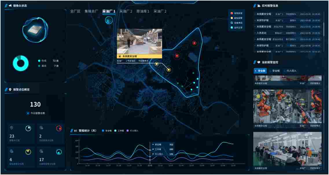 基于人工智能、物联网、大数据等技术手段,智能视频分析系统可作为企业的安全生产辅助工具,帮助企业实现运煤车辆有序管理、封闭式煤场自燃监测预警、输煤系统设备在线测温、输煤皮带运行缺陷检测、作业人员安全防护等业务应用。